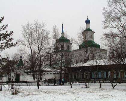 旧市街の外れにあるズナメンスキイ修道院。デカブリストの家族などの墓もある。下段の写真もそうで、左は「デカブリストの妻」たちの一人トルベツコイ公爵夫人とその子ども達の墓。 (上左:2001年3月,上中:2011年8月,その他:2013年8月撮影)