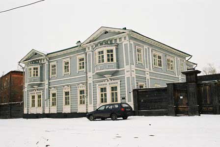 19世紀前半のデカブリストの乱で捕らえられた知識人はシベリアのこのあたりにまで流刑されているが、彼らは結果的にこうした辺境の地に首都サンクト・ペテルブルクやモスクワあたりの文化を伝える役割を果たすことになった。上段の写真は、そうしたデカブリストの一人、ヴォルコンスキーの家。下段は、トルベツコイの家。いずれも、博物館になっている。 (上段左:2001年3月、上段右及び下段:2011年8月撮影)