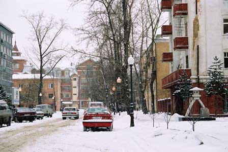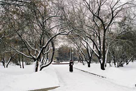 市中心部にあるキーロフ公園。雪景色がよく似合う。 (2001年3月撮影)