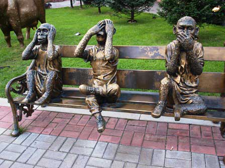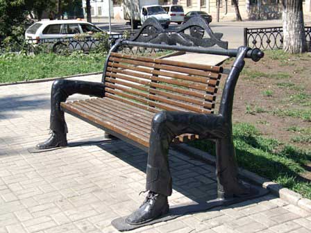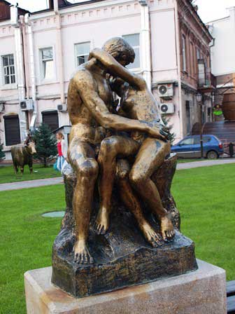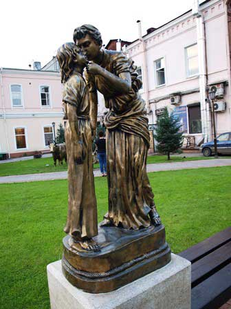 ここも日本でなら「公園」と呼んで差し支えないだろうがロシアでそう呼ぶのはちょっと躊躇われる小さな広場。特徴は、どういう意味かわからないが、様々の像が置いてあること。ま、ロンドンのビッグ・ベンの模型みたいのは「像」とは呼ばないだろうけど。中には、小学生ぐらいの男の子と女の子がベンチで熱心に本を読んでいる像もあって、その隣に座ったら何をそんなに夢中になって読んでいるのか、ちょっと覗きたくもなるというものだ。 (2016年8月撮影)