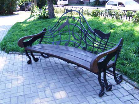 これは、「公園」と言っても、日本流に言えば「三丁目の公園」みたいな、住宅街の中のちょっとした広場。でも、置かれているベンチがお洒落で、写真に撮ってきた。 (2011年8月撮影)
