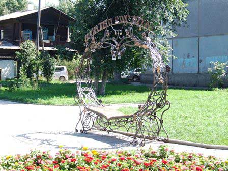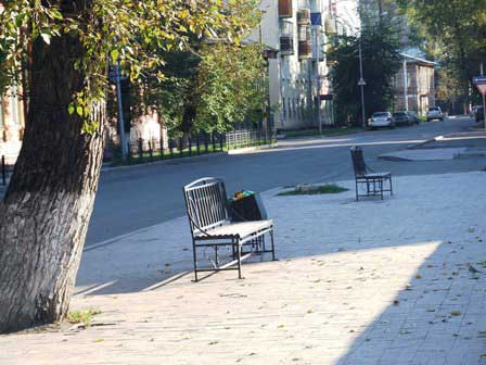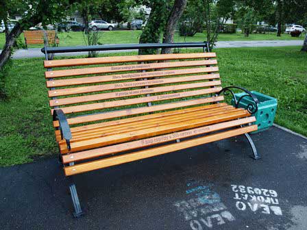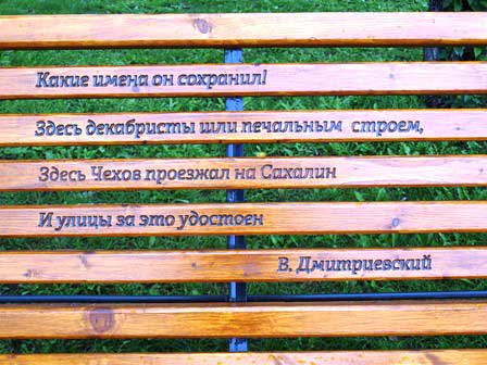 公園ではなく、普通の道に置かれたベンチ。東京・経堂の農大通り商店街のいくつかの店では、「ご自由にお使いください」と軒先に椅子を置いてくれているが、私のように歳をとった者にとっては、どこの町であれ、こういうのがあるとすごく助かる時がある。下段の中央と右は、もちろん同じベンチだが、背もたれにイルクーツク所縁の詩の一節が書かれていて、こういうのがアンガラ川沿いの遊歩道に沿っていくつも並べられていた。 (上段:2011年8月,下段:2016年8月撮影)