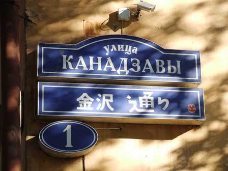 姉妹都市「金沢」の名前を付けた短い通り。石灯籠は、おそらくその友好の証しであろう。 (上段:2001年3月,下段:2011年8月撮影)