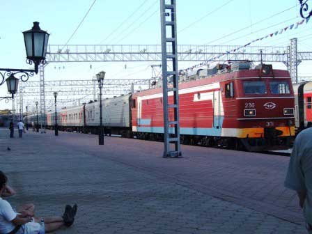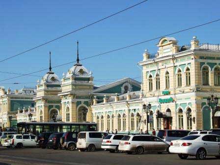 左は、改装される前のイルクーツク旅客駅。当時から外観のきれいな駅舎だった。下が、現在の駅舎とプラットフォーム。 (左:1993年8月,下:2011年8月撮影)