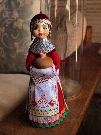 2014年の夏、チュバシ共和国の首都チェボクサリの露店で買った。ロシア,タタール,チュバシそれぞれの男女の人形があって、どれを選ぶかと聞かれたので、チュバシの女性のを買ってきた。円筒形の透明ケースに入って売られているのを見たのは、ロシアでは初めてだった。