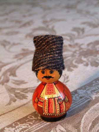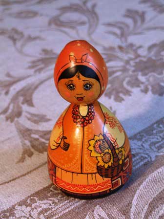 ロシアの人形にも日本人形やフランス人形のような立派なのがもちろんあって、きれいな民族衣装を着ていたり、農婦の姿だったり、これも追いかけ始めるとキリがない。私もそういうのを一つ買ったことがあるが、親戚にお土産として上げてしまったので、写真が撮れない。かわりに「こけし」風のを一つ。レニングラードの知人からいただいたもの。