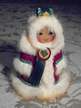 2015年の夏、サハ共和国の首都ヤクーツクで宿泊したホテルで買った。身につけているのは、もちろんヤクーチアの民族衣装だけれど、冬季には普通でも氷点下40℃になるという土地ならではの服装だ。
