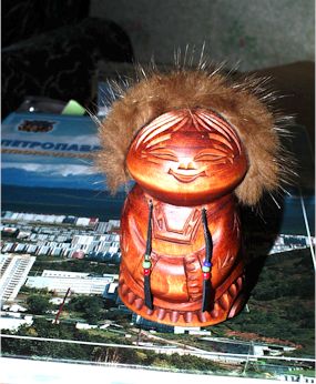 やはりカムチャッカ地方の原住民のお人形。底面が平らでなく緩やかな凸面になっていて、手でチョンとつついてみるとユラユラ揺れた後でちゃんと元通り正立する。現地のお土産店で買ったもの。