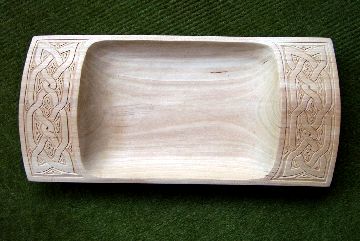 アムール河畔トロイツコエで買った木製のトレー。ナナイ族の人々に伝わる紋様が彫り込まれている。