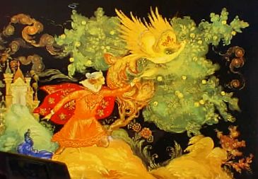 ロシアの塗り物と言えば「パレフ」とよばれる細密画が有名。教会のイコンを描く技法から出たものと言われ、宝石などを入れる小箱や装身具、場合によっては本の表紙などにも使われる。ここで写真を見せて紹介したいところだが、高価なために買ってこれずにいるので、パレフ塗りの絵を描いたカードの写真で勘弁してもらうことに....。