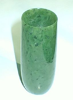 ネフリートは「シベリア翡翠」とも呼ばれる石材で、建物の装飾などにも使用されている。写真はイルクーツク市内で購入したネフリート製の花瓶。
