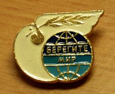 平和を訴えるバッジ。冷戦下の当時、この種のバッジやポスターも多く見かけた。
