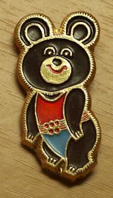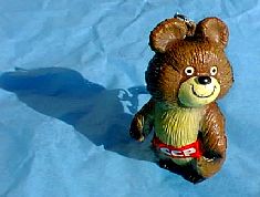 1980年のモスクワ・オリンピックのマスコットであった小熊の「ミーシャ」。オリンピック客が手軽に買えるお土産品として大量に作ったのに西側のボイコットで余ってしまったのか、オリンピック後かなりの年月が経ってしまった時期でもイルクーツクだのノブゴロドだのといった地方都市のホテルの売店にまとまった数があって買うことができた。私の手元には一つしか残っていないので写真で示せないが、よく見ると目の黒い点の位置などが一つずつ微妙に違い、表情が違って見えたのがおもしろかった。手工業で作ったのだろうか。