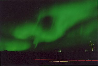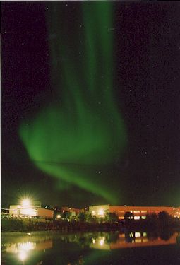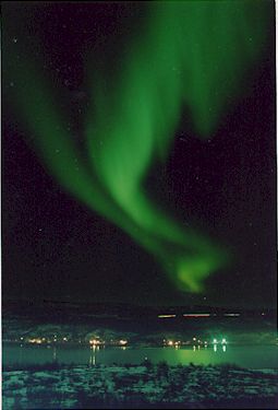 2005年の暮れにムルマンスクへ出かけたのはオーロラを見てみたいという気持ちもあってだったが、そうそう簡単に見られる筈もなく、滞在した5日間にオーロラは一度も現れないまま私はむなしく帰ることになった。それを気の毒に思ったのか、手配した車の運転をしてくれたアリョーシャが私にプレゼントしてくれた写真。もちろんアリョーシャが自分で撮ったもの。写真を見ると、ムルマンスク市内で撮影したことがわかるが、彼によれば市内で見るオーロラは緑とか青の単色だという。郊外で観察するといろいろな色が混ざるのだそうだ。