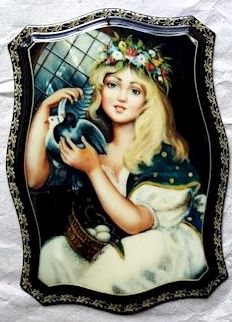 イルクーツクの知人からプレゼントされた壁掛け。トレーに花を描いたりするのと同じ技法で描かれていると思われる。可愛い少女の絵柄だが、どことなく妖艶なのがいつまでも気になる。