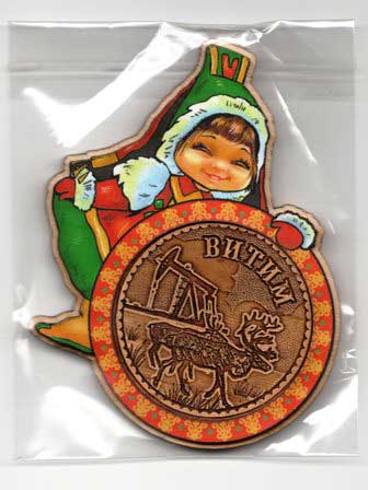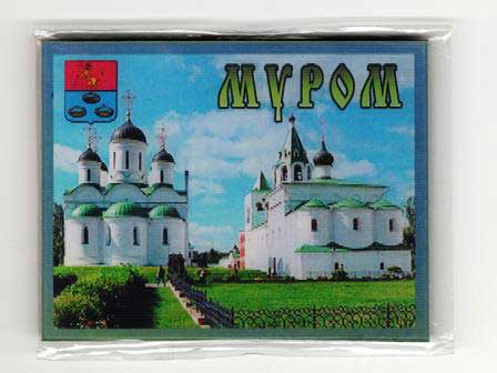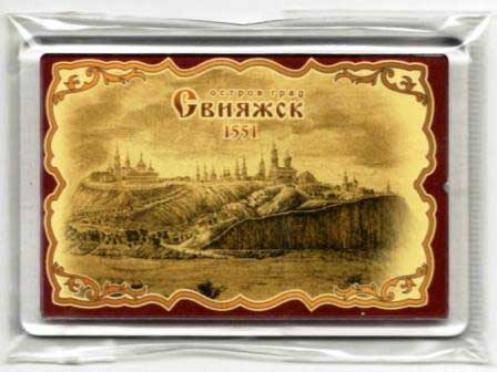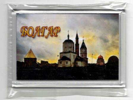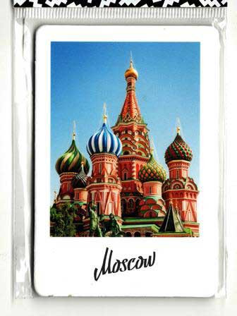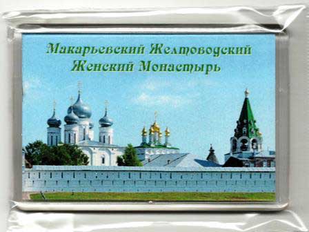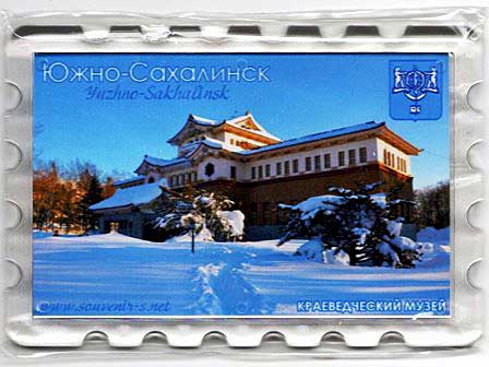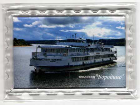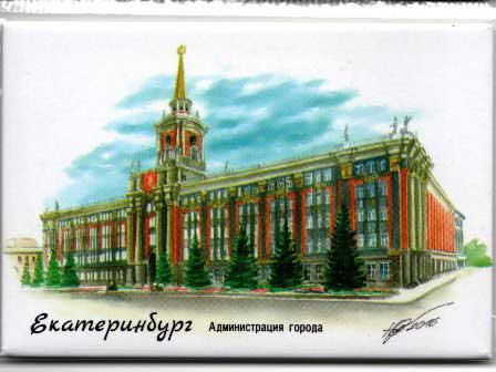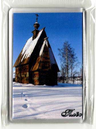 1) アルハンゲリスク 2) ヴィチム(サハ共和国) 3) ウラジオストク 4) リャザン 5) エカテリンブルク 6) ペルミ 7) ヤロスラブリ 8) カロームナ(モスクワ州) 9) ヤクーツク 10) ミールヌィ(サハ共和国) 11) ヴォトキンスク(ウドムルト共和国) 12) ムーロム(ウラジーミル州) 13) モスクワ 14) オデッサ 15) プリョス(イヴァノヴォ州) 16) ムィシキン(ヤロスラヴリ州) 17) カシーモフ(リャザン州) 18) マカリェフ(コストロマ州) 19) カザン 20) ボルガル(タタールスタン共和国) 21) スヴィヤシュスク島(タタールスタン共和国) 22) ユジノサハリンスク 23-24) クレヴァニ(ウクライナ共和国リウネ州) 25) 汽船《ボロジノ》号 ソ連時代のお土産店にはおそらく無かったのに、今では大抵の店で見ることができるのは、こうしたマグネット。安価なので買うほうも買いやすいし、売るほうにしてもたいしてコストをかけずに出来るらしく、絵はがきを見つけることができないような町や村でもマグネットは見つかることが少なくない。長方形の板状のものが多いが、1)や2)のように変化のある形のものもあるし、3)もよく見ると橋の部分が立体的に作られている。造りも、4)〜8)のように絵を描いた金属板で磁石を包むというもの、9)〜14)のように磁性体そのものに絵が描かれているもの、15)〜25)のように絵を描いた磁性体を透明な材質で覆ってしまうものなどいろいろある。1)は現地在住の知人が郵便で送ってくださったもの、それ以外はそれぞれ現地で買い求めた。