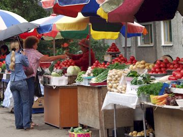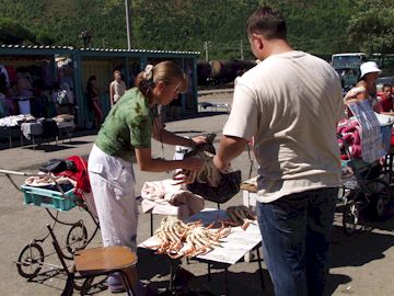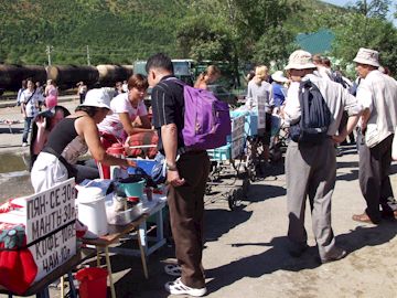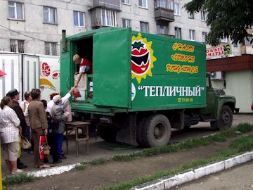 サハリン州の小さな村の駅前広場で開かれていた小規模な市。 (2006年8月撮影)