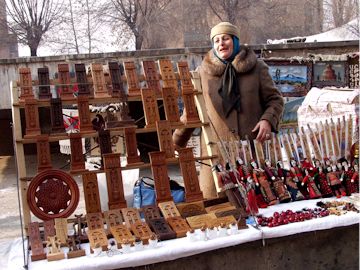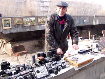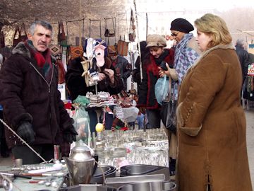 アルメニアの日本語ガイドが土産を買うためにと案内してくれたエレヴァンの大きなヤルマルカ。土産屋さんばかりでなく、古いカメラだの楽器だの日曜雑貨だの、はては化学実験につかう器具を売る店まである雑多な市で、見て回るだけで楽しく、結局土産は何も買わずに帰って来てしまった。 (2004年12月撮影)