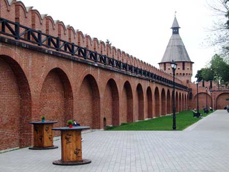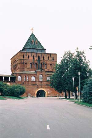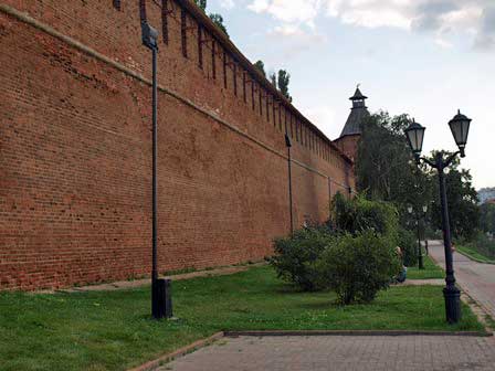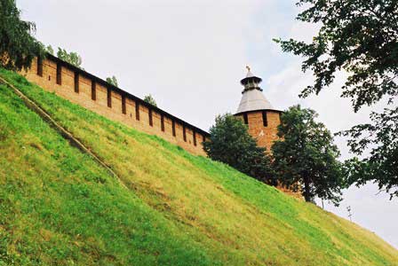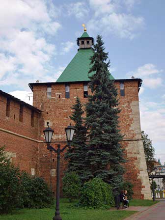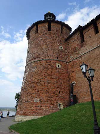 |  | ボルガ河畔の町ニジニ・ノヴゴロドのクレムリンは河岸段丘の上にある。上段左の写真は下から撮った城壁。同じく右の写真はクレムリン内部から見た城門の一つ。写真でははっきりしないが、塔の上にあるのが市の紋章。中下段の写真は城壁の外を歩きながら撮ったもの。 (上段左:1997年8月,同右:1995年8月,中下段:2018年9月撮影)