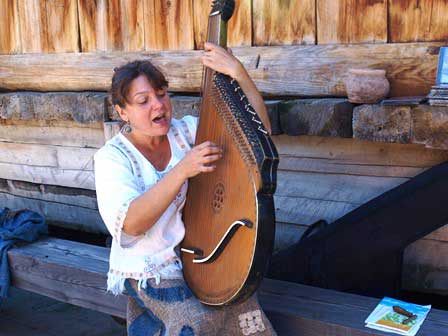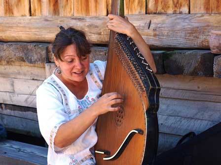 アンガラ河畔にあるタリツィの木造建築博物館で、ウクライナの民族楽器バンドゥーラを演奏する女性。きっと、ウクライナから遠くシベリアへ移住してきた人なのだろう。 (2011年8月撮影)