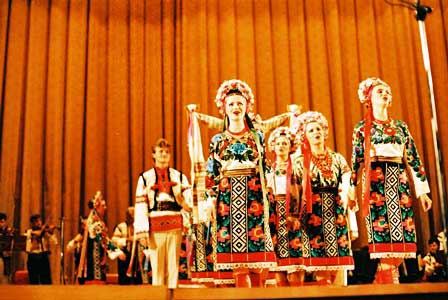 キエフの市内のホールで民族音楽を披露する歌舞団。 (1985年8月撮影)