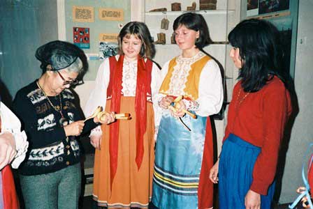 コラにある博物館のホールで民族音楽を披露するムルマンスクの大学生。 (1985年12月撮影)