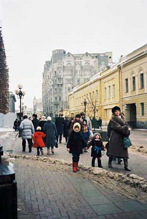 クトゥゾフ大通りに面した建物脇の歩道。ちょっと物憂い夏の日の午後。(1985年8月撮影)