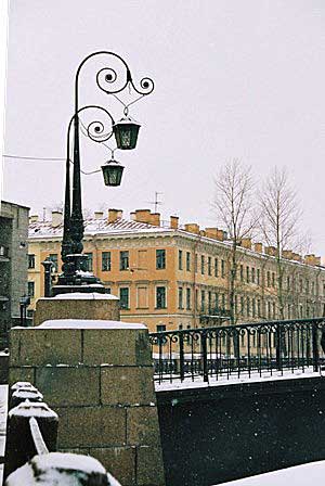 ペテルブルクの市中を幾筋も走る運河沿いの道。あちこちにその運河を渡る橋がかけられていて、それらは一つとして同じデザインのものが無い。 (左:1984年8月,中:1997年12月,右:1999年12月撮影)