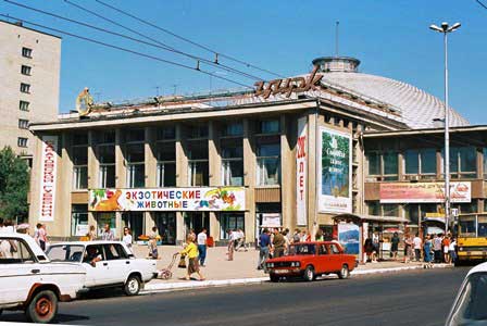 サラトフ市の繁華街のうちの一つ。州都らしい活気が伝わってくる。向かいの建物はサーカス。 (1997年8月撮影)