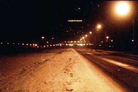 市の中心部から離れたワシーリー島の西岸に近い場所の夜道の風景。 (1979年12月撮影)
