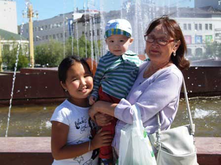 サハ共和国の首都ヤクーツクのレーニン広場を散歩していた時、突然この三人のうちのお母さんから声をかけられた。カメラのシャッターを押してほしいとかそんな用件だったのではないかと思うが、私がよく聴き取れずに戸惑っていると、あ、外国人なのかと気づいたようで、結局何も頼まれなかった。で、逆に私のほうから写真を撮ってもいいですかと尋ねて撮らせてもらったのがこの写真。 (2015年8月撮影)
