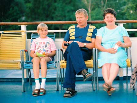 やはり「子どもたち」の章に出てきたエカテリンブルクに住むニーナの家族。裕福な環境で大事に育てられていることがうかがえる。ペルミからボルガ川を経てペテルブルクに向かうクルーズ船のデッキで。 (1995年8月撮影)