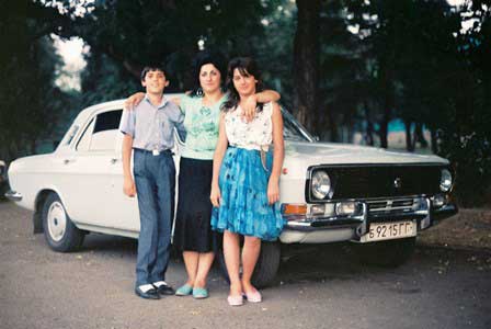 グルジアの首都トビリシで出会った家族。ただし、グルジア人ではなくてアルメニア人だと言っていた。ソ連時代、グルジアでの人口あたりの自動車の普及率はロシアを抜いているとも言われ、豊かさを誇っていた。 (1989年8月撮影)