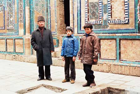 ウズベクの古都サマルカンドのシャーヒ・ジンダ廟で出会った父子。後日少年からは手紙が届いたが、教養あふれる家庭で育っているという雰囲気であった。 (1991年12月撮影)