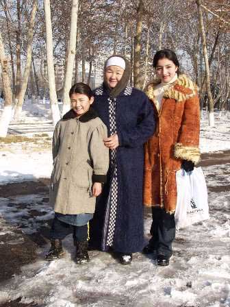同じウズベキスタンの首都タシケントで見かけた姉妹と祖母。妹は小学校5年生だと言っていた。 (2007年1月撮影)