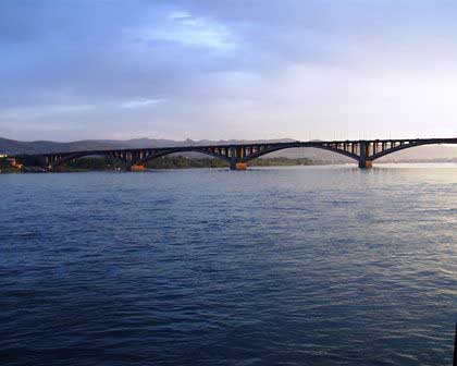 エニセイ川にかかる大きな橋。 (1999年8月撮影)