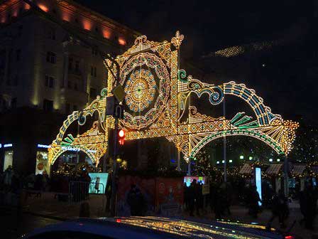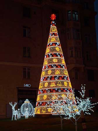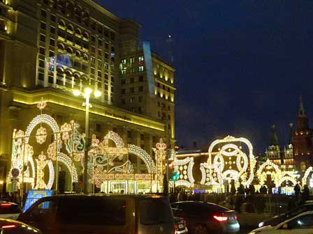これがロシアの首都モスクワとなると、さらに大がかりで華やか。撮影したのはモスクワのほぼ中心部。 (2017年1月撮影・モスクワ)