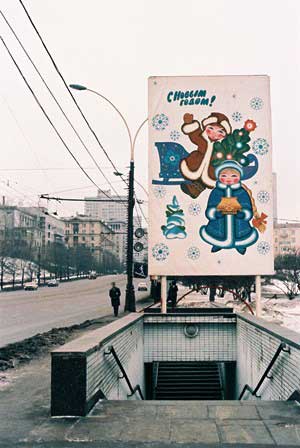 町にクリスマスツリーに似た飾り付けをしたモミの木や新年を祝う看板が出され、人々の挨拶の中にも「ス・ノーヴィム・ゴーダム」という言葉が頻繁に挟まるようになると、新しい年はもうすぐそこまでやってきているわけだ。 (1985年12月撮影・モスクワ)