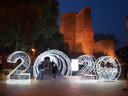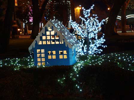 LEDが安価になったせいだと思うけれど、近頃ではどの都市でも年末年始の時期にはこうしたイルミネーションが輝く。 (2019年12月撮影・バクー)