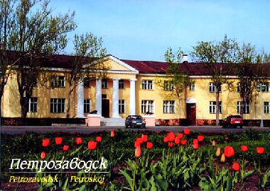 オネガ湖畔にあるカレリアの首都。ピョートルT世が大砲工場を建てたことからこの市名があるという。キジ島への玄関口で、ネヴァ川やシビル川から大型船で来る客を除けばキジへ行く人はたいていここを通る。 (左:1987年,右:2009年発行)