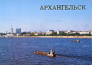 北ドヴィナ川の河口近くにある古い町。かつて海への出口の少なかったロシアにとって白海に近いこの町は交易の要衝であった。現在、市の郊外には広大な木造建築博物館がある。 (右;1989年,下1986年発行)