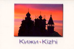 オネガ湖に浮かぶ多くの島の一つだが、ロシアの古い木造建築を集めた展示場のあることで国際的に知られている。 (発行年不詳)