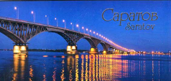 サラトグ市の中心近くで、ヴォルガを渡る大きな橋の夜景を表紙にした絵はがきセット。 (2014年発行)