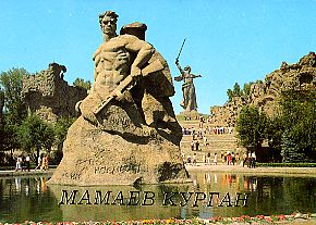 そのスターリングラード戦でも最も激しい戦闘の続いたママイの丘は現在では平和を祈る記念公園となっている。 (左:1984年発行,右:発行年不詳)