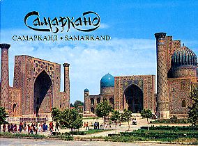 かつてのチムール帝国の首都で、寺院の丸屋根を飾る青いタイルの色から「青の都」とよばれるとか。 (左:1990年発行,右:発行年不詳)