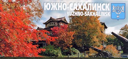 主にサハリン州の自然を集めた絵はがき集。カバーを見てもわかる通り、一枚一枚のカードにも露英両語のほかに日本語での説明が付いているのが特徴。 (発行年不詳)