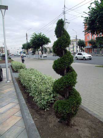 ハバロフスク市内のいたる所にあったが、私は、今のところ、他の都市ではこういうのに気づいたことがない。それにしても、水やりはどうしているのかと思う。 (2012年8月撮影)