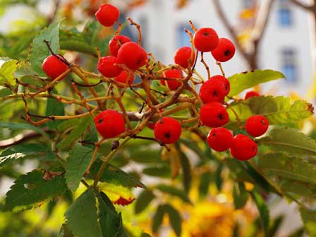 アンガラ河畔の村にある一軒のダーチャに招待していただいた。そこの庭の花と、同じダーチャの敷地にあった赤い実をつける木。 (2011年8月撮影)