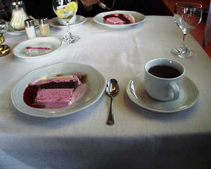 「第三の皿」と言われるデザートには果物やコンポート、あるいはケーキなどいろいろだが、日本人観光客にとっての一番人気は何と言ってもアイスクリーム。デザートでなくても、街角の立ち売りのを買って食べたことのある人も多いだろう。近頃では通りを歩くと外国ブランドのアイスクリームをあちこちで売っているけど、昔ながらの素朴なロシア国産のがいちばんうまい。 (1999年8月撮影)