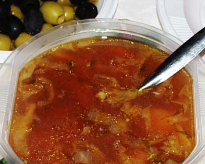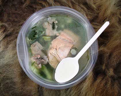 「ウハー」という魚のスープは臭みがあって苦手という人が少なくない。写真のは鮭のウハーだったせいか、そんなことはなかった。